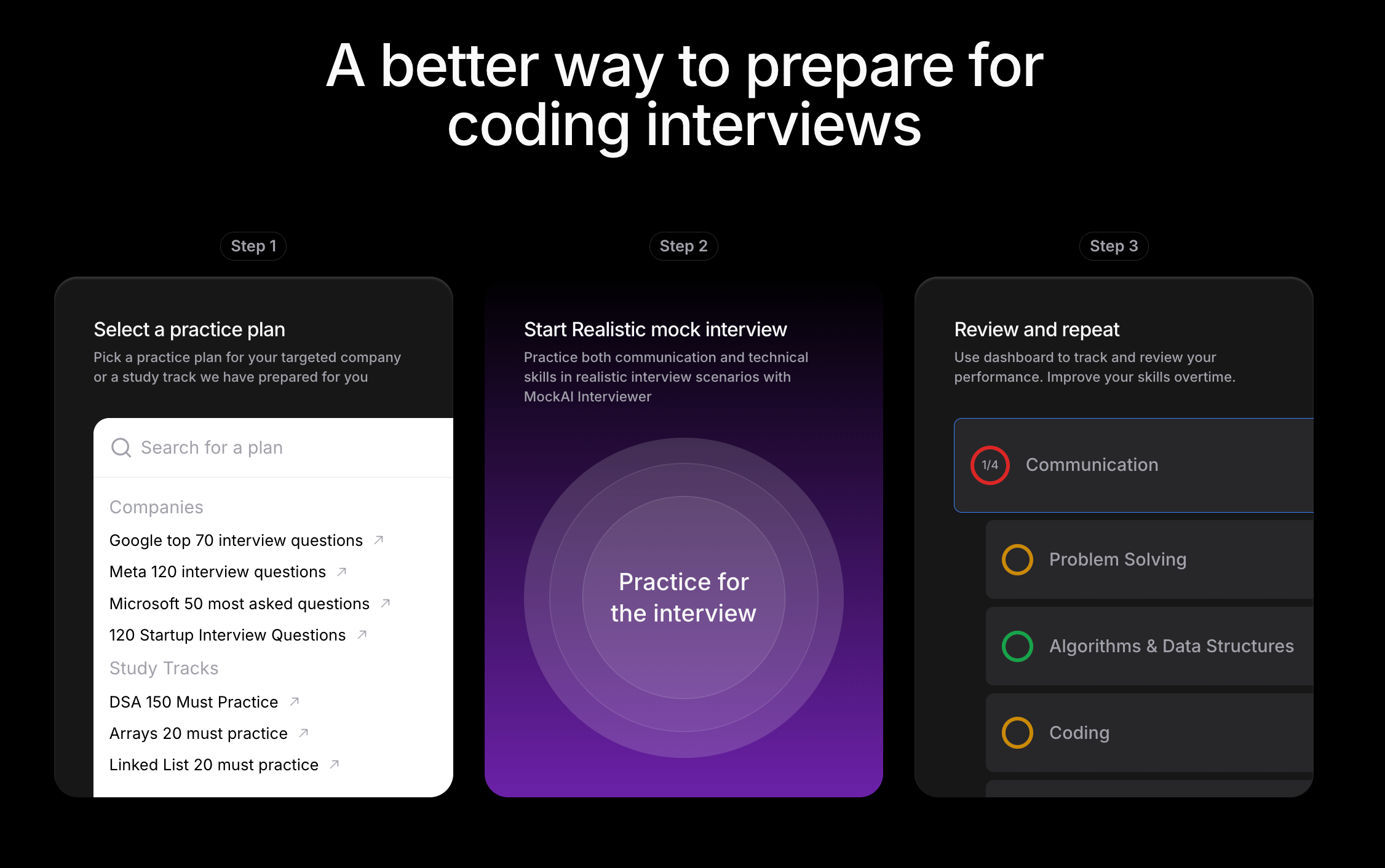 The "Silent Coder" Problem: Most critically, we discovered that even when candidates practice on platforms like LeetCode, they are inadvertently training the wrong habit: solving problems in silence. A real technical interview is a test of communication and collaboration. Candidates struggle to articulate their thought process, ask clarifying questions, and discuss trade-offs—the very skills that interviewers use to evaluate problem-solving ability.